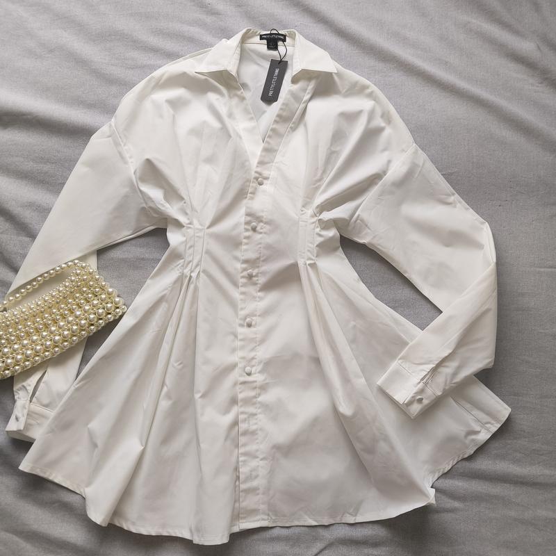 Белое платье рубашка от PLT с приспущенными плечевыми швами Размер UK 8, XS-S Плечи - 64 Длина - 80 Рукав - 56 ПОГ - 41 ПОТ - 31 ПОС - 61 Состав ткани: полиэстер