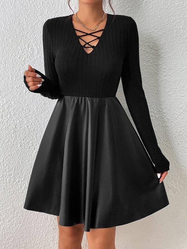 Мод 145 Размер:42-44,46-48 Тканина:эко-кожа+ мустанг Стильное женское платье до колена расклешенное от талии с пышной юбкой длинный рукав.Супер качество по супер цене. Цена: 660 грн
