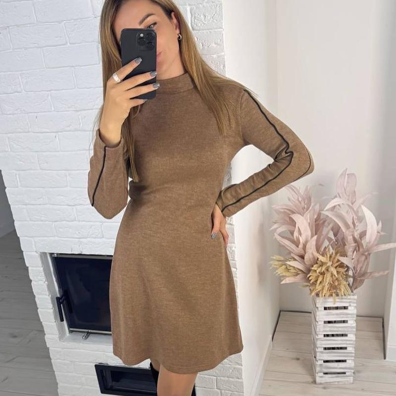 Платье Арт 571/868 Тканина ангора «дабл» Цвет черный, молочный, рыжий Размер 42,44,46,48 Цена 700 грн Платье из мягкой ангоры, на рукавах декоративная отделка. Ангора немножко тянется