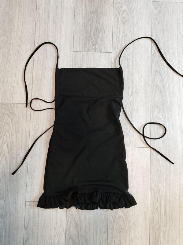Чорна міні сукня з відкритою спинкою на завязках, стан ідеальний, розмір xs