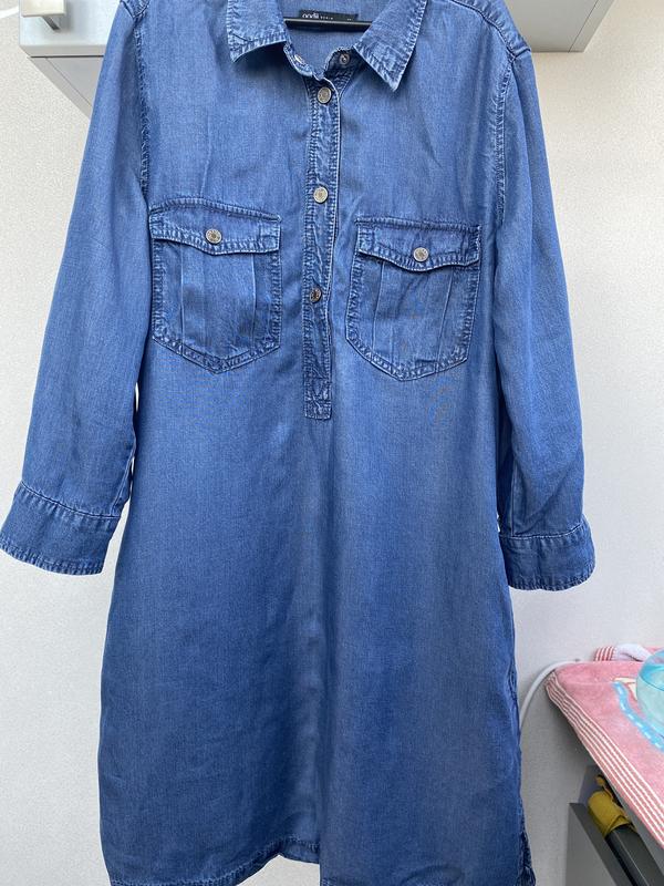Платье- рубашка с легкого джинса размер S можно на М, четверть рукав длина 45 см, по бокам разрезы и карманы. Длина 85 см, плечи 38 см, рог 47 см. Смотрится красиво.