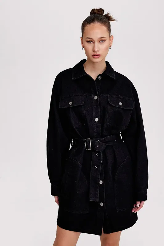 Чорна коротка джинсова сукня Бренд: LOAVIES Розмір: XS підійде на S Груди: 53 см, талія:53 см, низ завужений: 49 см, рукав від комірця: 73см, Склад: 80% бавовна, 20% поліестер
