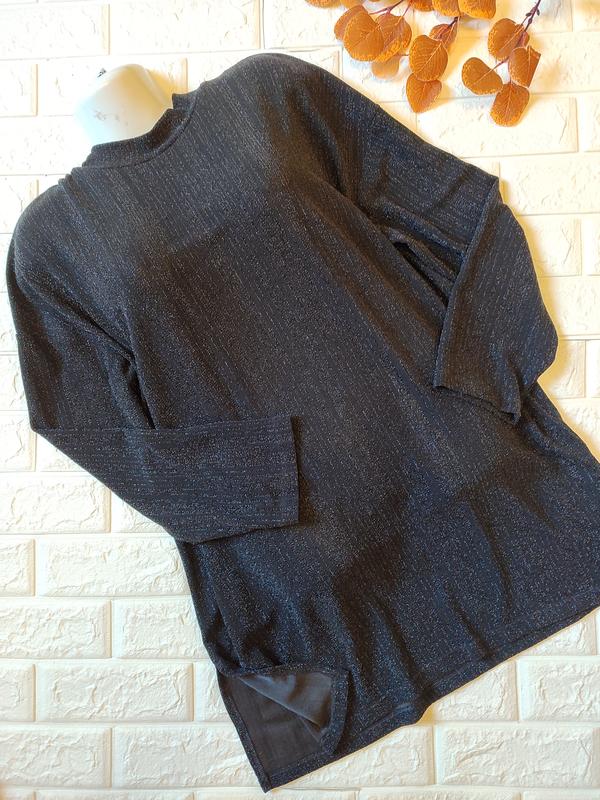 Платье женское короткое, с разрезами по бокам, прямого кроя, ткань трикотажная с блестящей нитью, ниспадающая, ни толстая, без нюансов Размер указанный 16 Замеры на фото, тянется