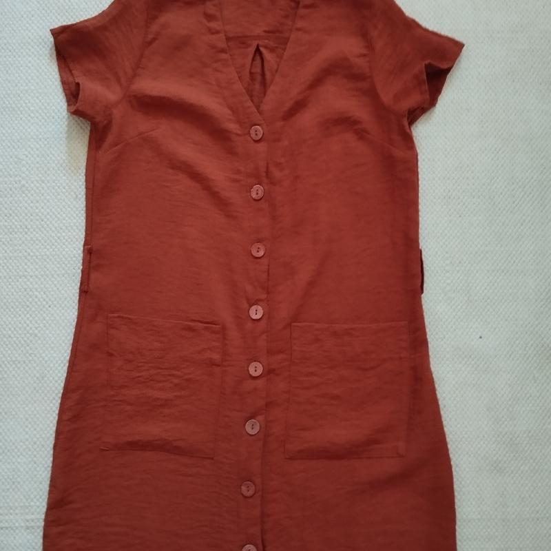 Платье кирпичного цвета,очень классного качества! Плечи 33 см,ПО под руками 46 см, ПО талии 44 см, ПО бедер 52 см, длина 90 см. Пояс отсутствует.