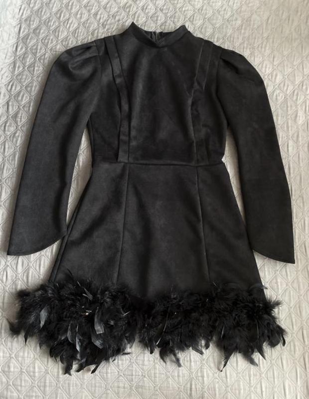 Дуже гарна замшева сукня з пір’ям знизу,одягнула один раз на фотосесію