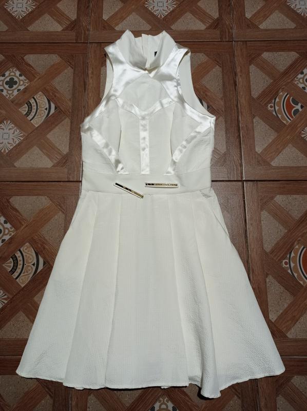 Состояние очень хорошое. Не одевалось только ирялось. Без следов дезика и без следов тонального крема. НЮАНС на поясе от неправильной упаковки переломился декор.Моженная аккуратно отпороть одну часть. Частица с надписью останется. Отже . Платье из искусственного материала.Пошития по фигуре, приталенный силуэт. В районе груди есть подкладка, есть вытачки. Рукавов нет. Воротничок аккуратный, возможно стеечка. Есть очень важная вещь-это довольно глубокие карманы -2 шт.Основная ткань в тиснением. Ткань декора имеет сатиновый блеск. Низ, то есть юбочка со складками. Сзади застегивается на молнию. Платье на выходе,для торжественных событий, прям для свадьбы. Цвет белый с едва заметным молочно-сливочным оттенком. На грудь 2-3 размера. Замеры: ПРГ-40 ПОИ-36 ПОБ-50 ширина по низу -72 длина сбоку общая от подмышки вниз-65 длина спереди от середины плеча вниз -88 длина по спинке-87 длина юбочки -46