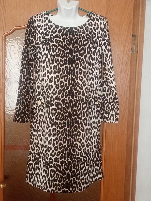 платье с модным леопардовым принтом.на перчатках украшено золотыми пуговицами.