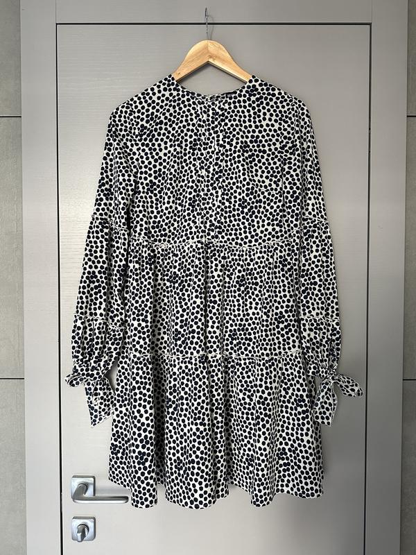 Платье украинского бренда MustHave. В темно-синей горошек (на фото кажется черным) Размер: S-M Свободный крой. В идеальном состоянии.