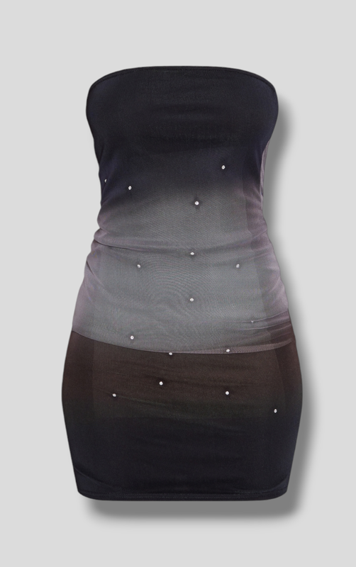 Платье сетка темно-серая мини-платье с омбре и бриллиантами от prettylittlething