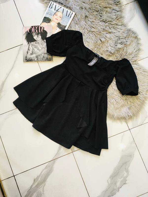 Черное пышное платье по плечам boohoo 2хл Полуобхват груди 49 тянется до 56 Полуобхват бёдер 67 Длина 78 #r50