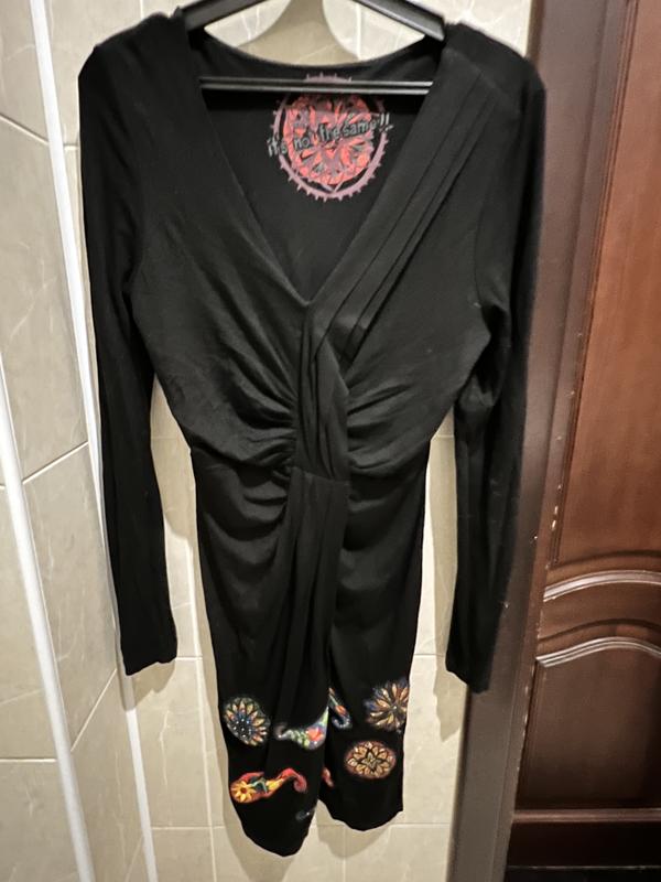 Произведение искусства от культового Desigual Платье черного цвета с отделкой снизу спереди (см. фото) 100% оригінал Интересный фасон, который подчеркиваю все достоинства фигуры и скрывает недостатки. Состав и размер на фото. Размер промаркирован S европейским, но можно и на М. Состав - вискоза и эластан. Пишите, ответьте на вопрос, выполните дополнительные фото. Смотрите другие Мои объявления. Только оригиналы и только Мои вещи.