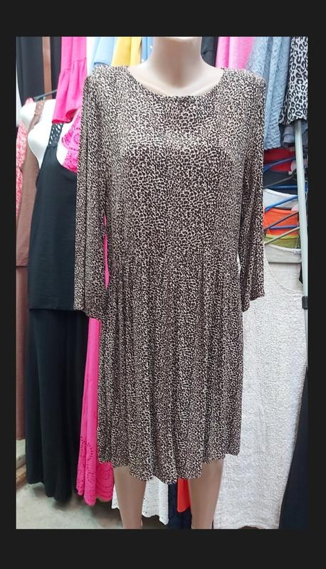 Платье из натуральной ткани с 3/4 рукавами Леопардовый принт Размер 46/48 Фасон трапеция Состав ткани 100% вискоза