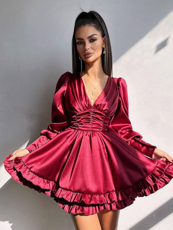 Атласное платье с пышной двойной юбкой