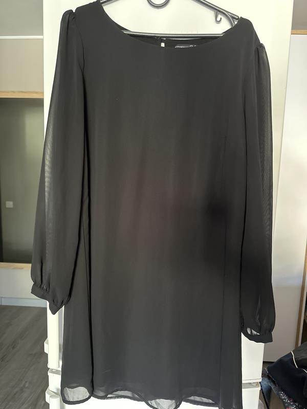 Маленькое черное платье на подкладке Прозрачные рукавчики Длина до колена Размер - 14 Материал - 100% полиэстер