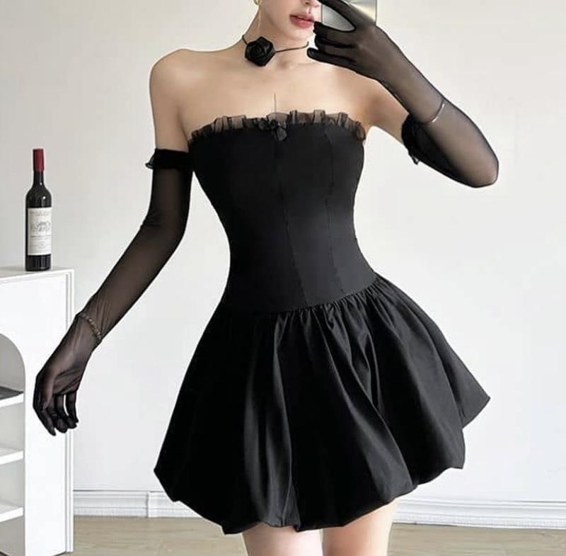 Платье со шнуровкой на спинке (перчатки в комплекте) в корейском стиле