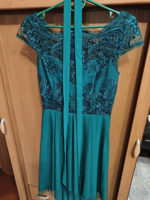 Элегантное платье зеленого цвета, размер S, созданное для настоящих ценителей изящества и стиля. Верхняя часть платья украшена изысканным узором из кружева, который добавляет образу женственности и роскоши. Тонкие детали кружева подчеркивают нежность силуэта, создавая эффектный контраст с легким фатином, который плавно спадает книзу. Фатиновая юбка создает объемный, воздушный эффект, добавляя платья игривости и утонченного объема. Это платье идеально подходит для особых событий, где нужно выглядеть непревзойденно.