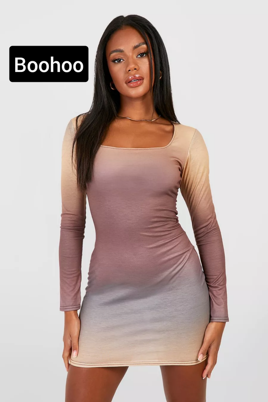 женское платье мини в принт омбре, платье с длинными рукавами, с квадратным вырезом, новое 🌹