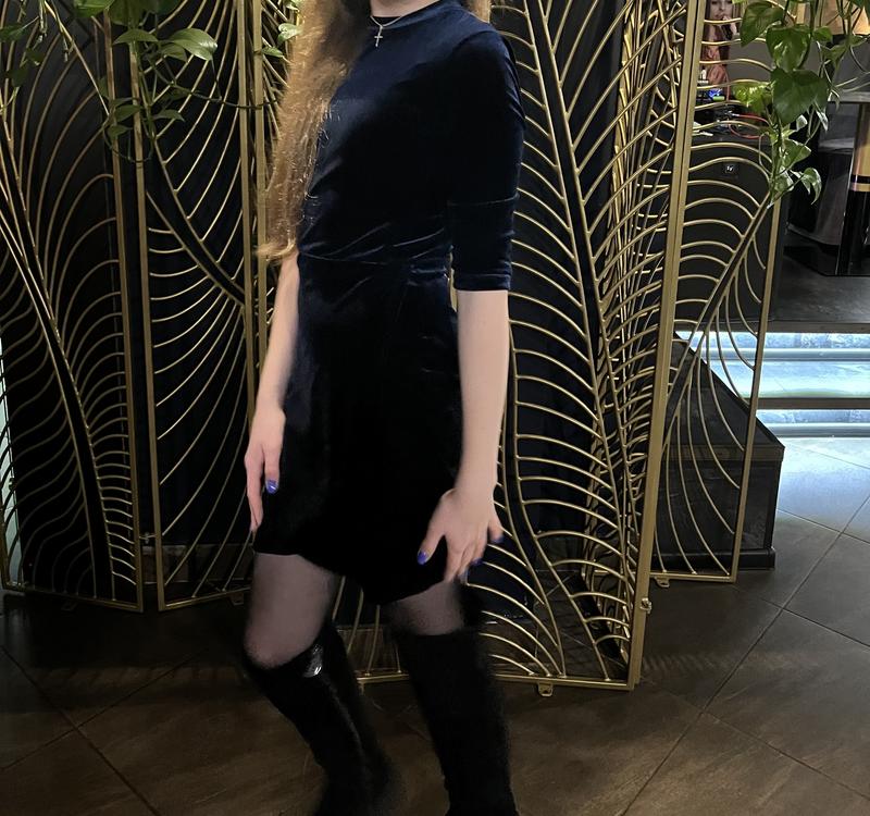 Женское вечернее платье из велюровой ткани Красивый темно синий цвет Состояние-идеальный, одевала 1 раз Размер-хс/с
