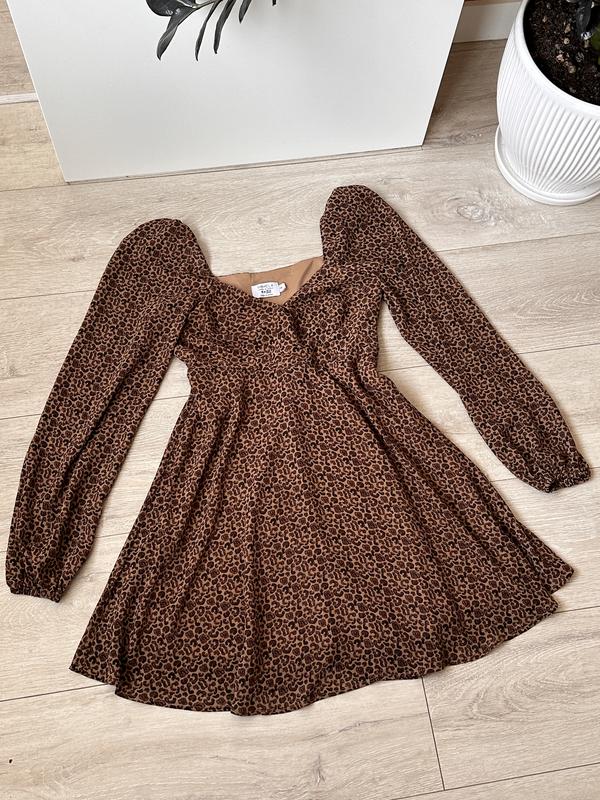 Женское леопардовое мини платье NA-KD Pamela Имеет вырез в форме серца спереди и широкий вырез сзади Размер XS/S С подкладкой