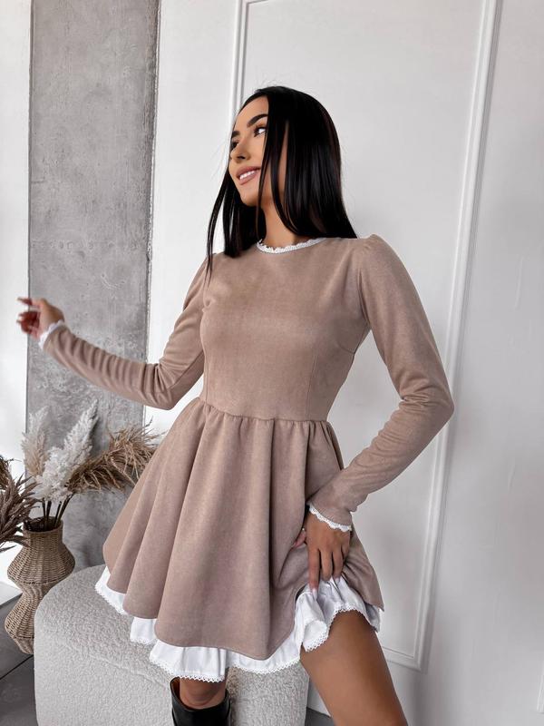 Сукня арт. mag. 10495 Короткое, стильное и романтичное, платье обработанное французским сетком, застегивается молнией на спинке, юбка убранная, солнце клеш + съемная белая юбка с сетевым Ткань: замш на дайвинге (тянется) с приданием белого коттона (хлопка) производство Турция Цвет: бежевый, графит, черный Размеры: с-м; м-л Цена 800 грн
