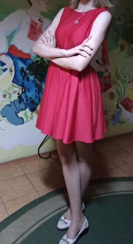 Красного цвета На спине имеет бант Засекается молнией на спине, меет также вырез
