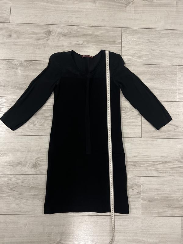 Трикотажная тягучая с вставкой черной полупрозрачной шифоновой сверху (спереди и сзади) – тонкая полоской вдоль (спереди и сзади);рукава из шифона 3/4. Ткань не убирается, не кашлатится. Можно под кроссовки на повседень,или же паилборы и на вечер