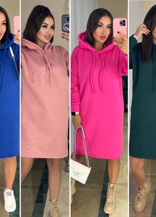 Теплое платье С капюшоном! Стильное, Комфортное Размеры 42-46,48-52 Ткань Теплая тренирит на флисе на Флисе люкс 🔥 Цвета: беж, зеленый, малина, электрик,графитовый,бутылка,пудра Цена: 530грн