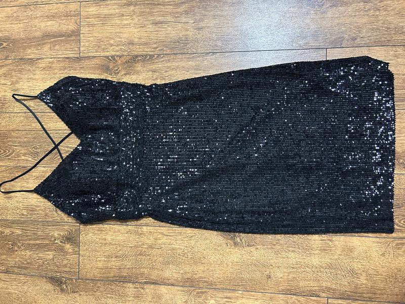 Шикарное коктельное платье, украшенное пайетками по все длине, есть чашки