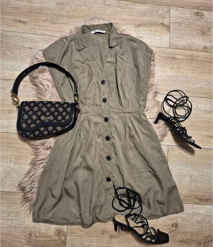 Легкое платье рубашка от Zara Оригинал Застегивается на пуговицы Землянистый оттенок хаки Приятное к телу Без нюансов Состояние на отлично Плечи-54 Длина-87 Талия-37 Грудь-50 В груди и бедрах должно лежать свободно Все замеры в полуобхвате