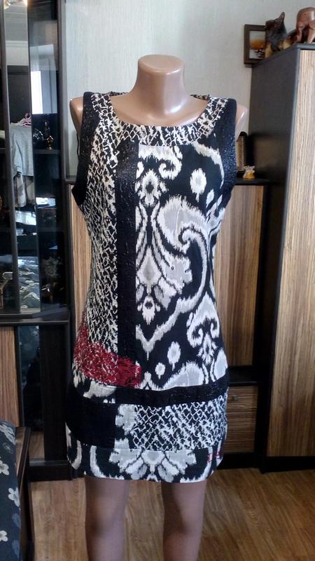 Классное платье-сарафан Desigual, очень красивое сочетание ткани,вышивка я с боку и по низу,состояние идеальное,одето один раз, Доп замеры и фото по запросу, возможна примерка в Киеве.