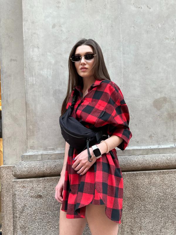 Платье-рубашка в клеточку. Идет вместе с ремнем (резиновый)