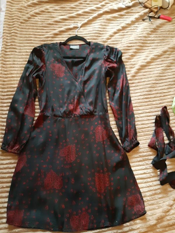 Атласна сукня чорного кольору в червоних сердечках