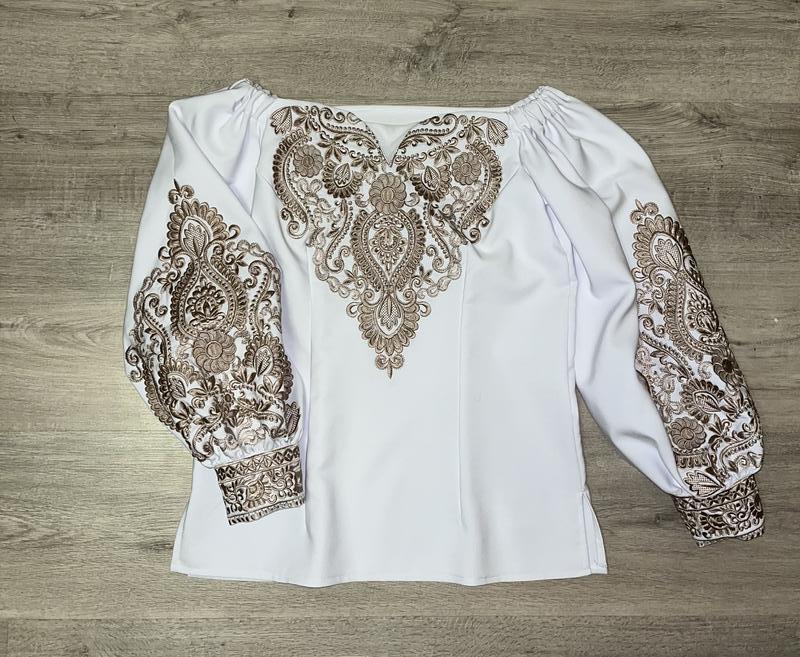 Дуже стильна вишиванка з вишитим передом та обʼємними рукавами преміальної якості,в комплекті також є пояс. Розмір ХС-С
