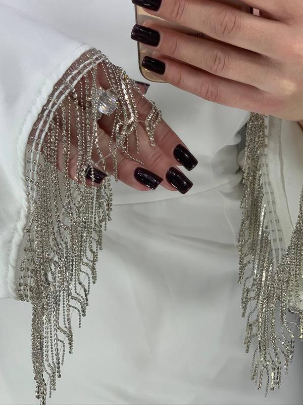 Белое платье с бахрамой из страз