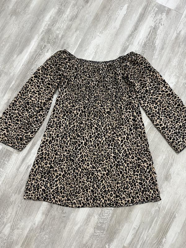 Стильное платье из вискозы zebra леопард с открытыми плечами на м или l