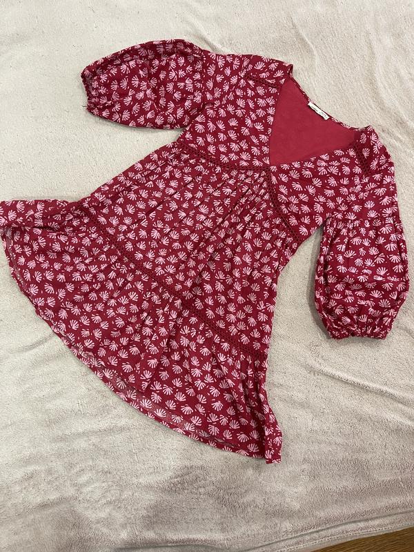 Платье с декольте, красивым принтом