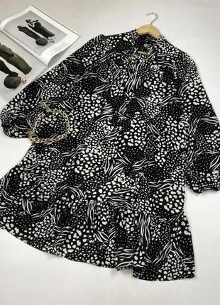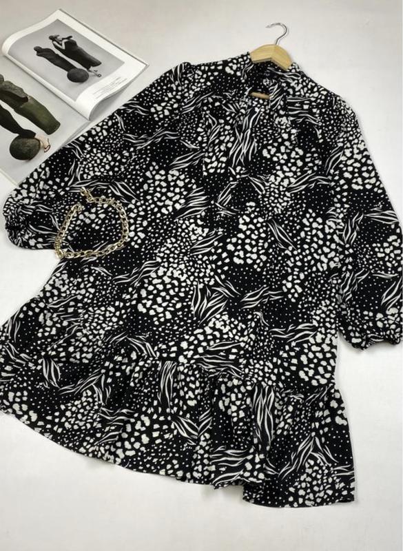 На шиї завʼязка, рукава внизу на резинках. Ткань легкая, но не просвечивает. Длина 90 см, пог-50 см, пот-56 см, рукав 60 см.