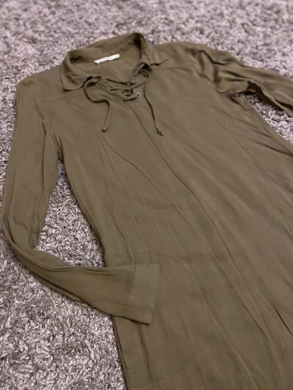 Платье имеет карманы, зверx шнуровка, рукава можно сделать 3/4. Хорошо можно совместить с осенними образами. Длина 78 Груди 43,5