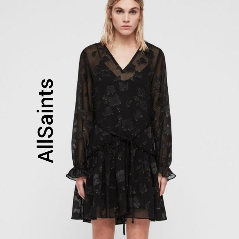 Платье AllSaints. Полупрозрачный шифон с набивным цветочным орнаментом, с добавлением люрексовой нити. Без подкладки. Под низ подойдет любая комбинация. Размер М. В идеальном состоянии. (2506к)