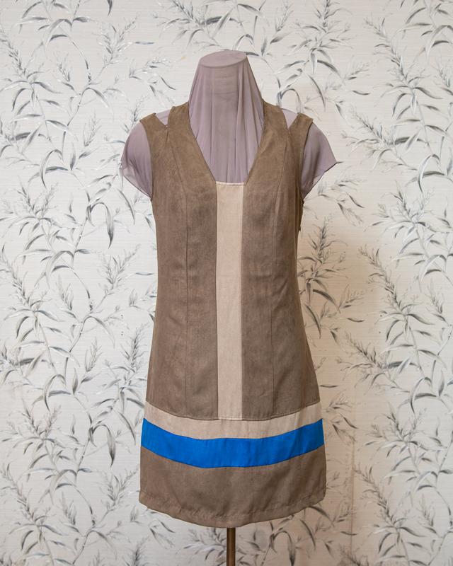 Коротка сукня з блакитною вставкою на стегнах ✂️Miss Captain 📍Розмір 38 Колір – сірувато-бежевий, вставки спереду світло-бежевого та блакитного кольорів 📐МІРКИ: Плечі – 37 см Півобхват грудей – 47 см (по лінії під руками) Півобхват талії – 42 см Півобхват стегон – МАКС 50 см Довжина виробу – 96 см (по середині спини) Довжина спідниці – 52 см (від умовної лінії талії) 🏷МАТЕРІАЛ: 100% polyester Застібка – блискавка збоку Тканинина має зовні м'яку текстуру, схожу на замшу. Без підкладки, не тягнеться. ♻️Стан – б/у, відмінний Art. FCD-012 📦📬Відправка "Нова пошта" або "Укрпошта" за рахунок отримувача. Передплата 100%. #кежуал #сукнязамшева #basicdress #навечірку #smartcasual #сукняукраїна #MissCaptain #size38