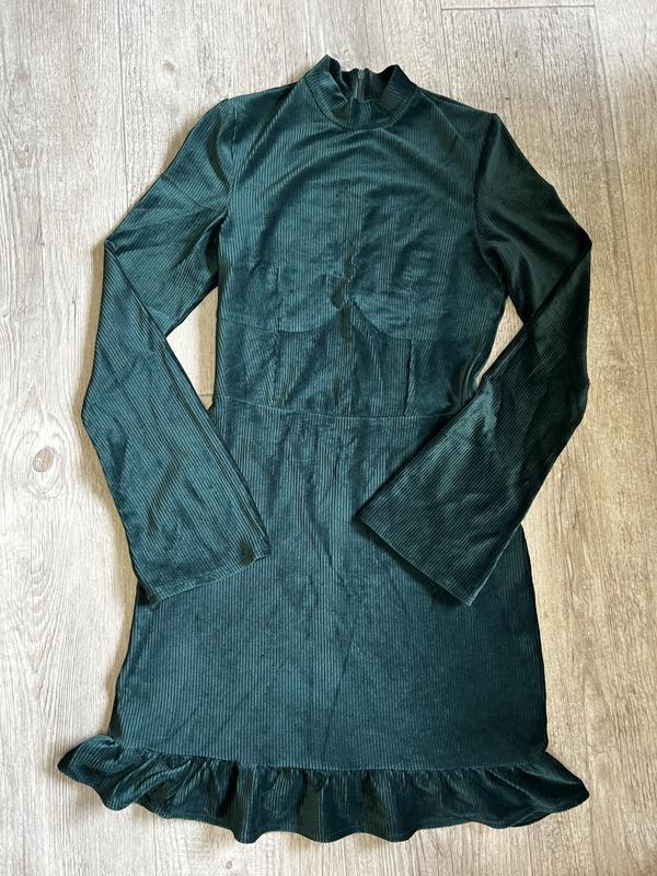 Изумрудное велюровое платье на скрытой молнии на спине Стан 10/10 Еластан 5% Полиэстер 95% Цвет камера не передает, наживо красивый изумрудный Длина 89.. Талия 31. Бедра 43. Длина рукава 64