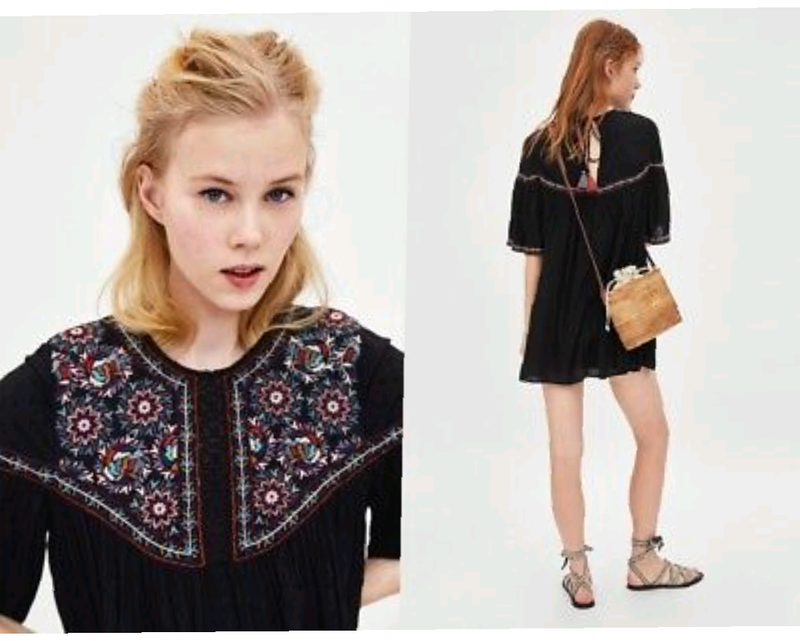 короткое платье с вышивкой есть дефект на рукаве объем груди 96 см длина 75 см!! по бирке размер М