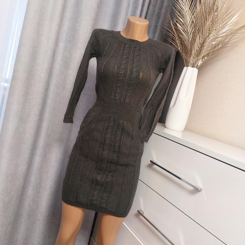 Теплое платье фирмы Mango. Размер S. Состав ткани: 50% акрил, 39% шерсть, 10% мохер. Ширина 35 см, талия 30 см, бедра 40 см. Длина 87 см, рукав 3/4. Два кармана.