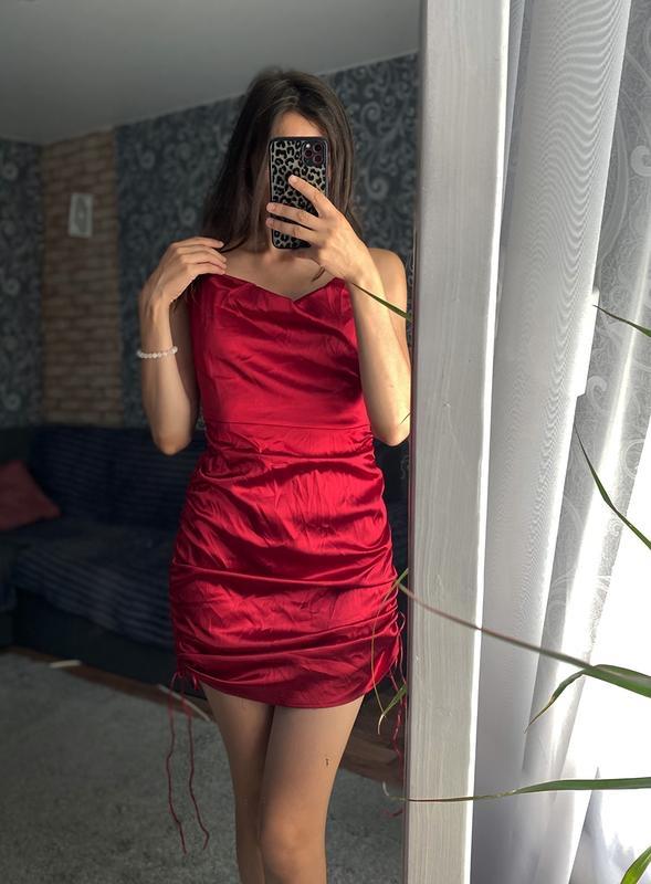Просьба заказа через Шафу оформлять ПОСЛЕ договоренности❤️ ❗️секонд Очень красивое платье, не яркое красное, а вишневое, сбоку длина регулируется, идеальное состояние) Размер указан С, но можно и на М На фото рост 173, размер С Отправка новой почтой, Укр-почтой и по почте городов💌