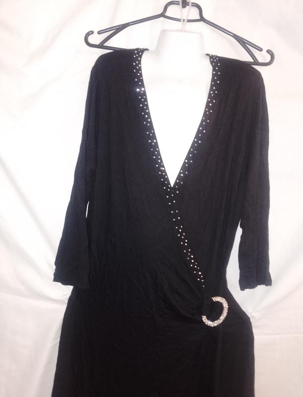 Платье черное с блестками, на запах, мягкий трикотаж, стрейч, длина 112, грудь 50, талия 40, бедра свободно