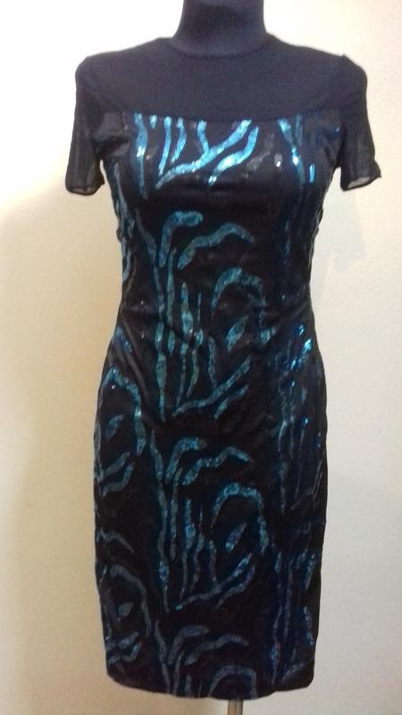 Платье прилегающее из пайетки и сетки, на подкладке,в комплекте съемные рукава