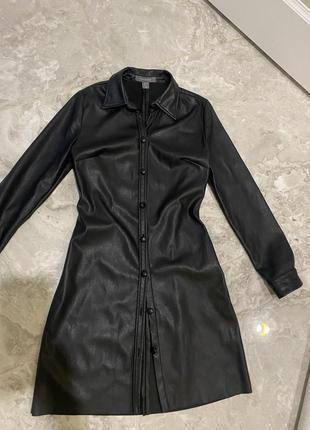 Женское платье из эко кожи на пуговицах, утепленное PRIMARK размер XS