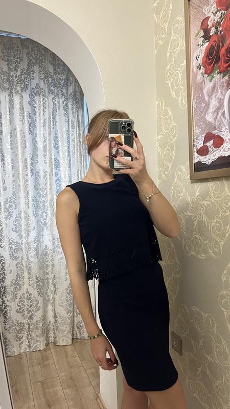 Платье темно-синего цвета, с двойной кокеткой и красивой спинкой Одето на С, можно С и М