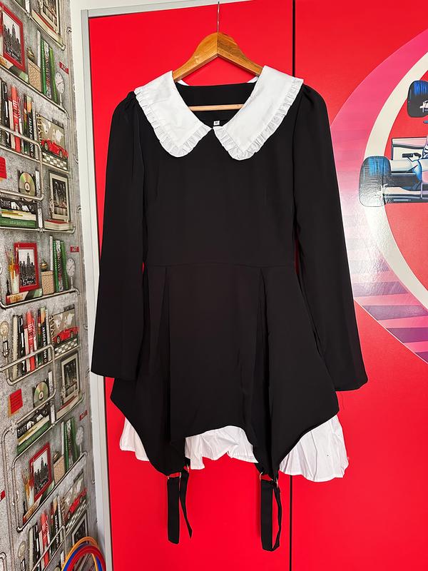 Платье черная стильная модная короткая s m с длинным рукавом 44 46 48 с белым воротником 2...