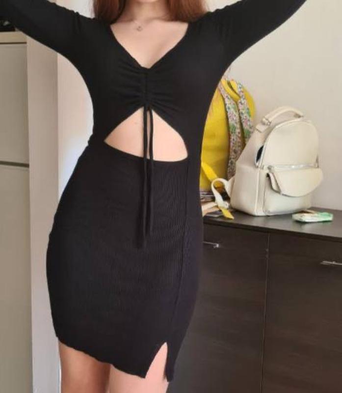 Невероятное облегающее черное платье с разрезом на животе, декольте и на ножке. Подчеркнет фигуру. Размер XS-S. Очень впечатляющая. Красивое облегающее черное платье. на фото как садится на размер S. Тянется, приятный материал. Без дефектов